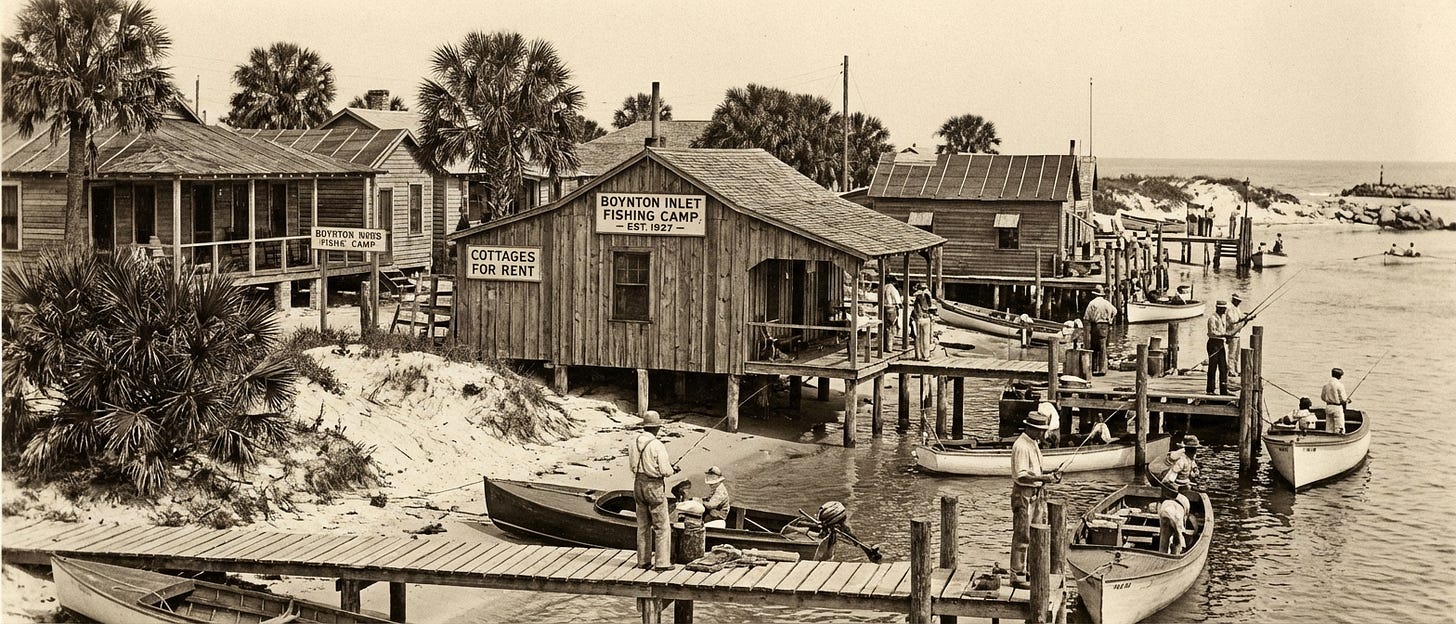 When the Boynton (South Lake Worth) Inlet opened in 1927, the area quickly became a destination for anglers. Several rustic fishing camps and cottages were built near the inlet where visitors could stay for fishing trips. These wooden structures attracted people from across Florida, but sadly they disappeared as the area was modernized in the mid-19th century.