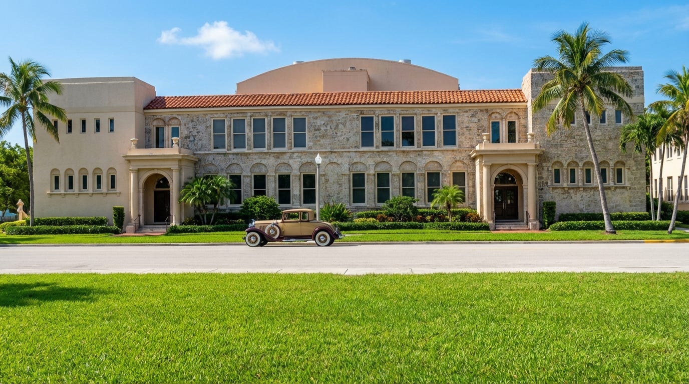 Boynton Beach High School was built in 1927, with its first graduation in 1929 and last in 1949 with 15 students. After closing, the school was restored and renovated in 2018 to become the Boynton Beach Arts and Cultural Center. The facility features a stunning 39-foot domed ceiling, an event hall, studio spaces, exhibition areas, a patio, playground, and courtyard.