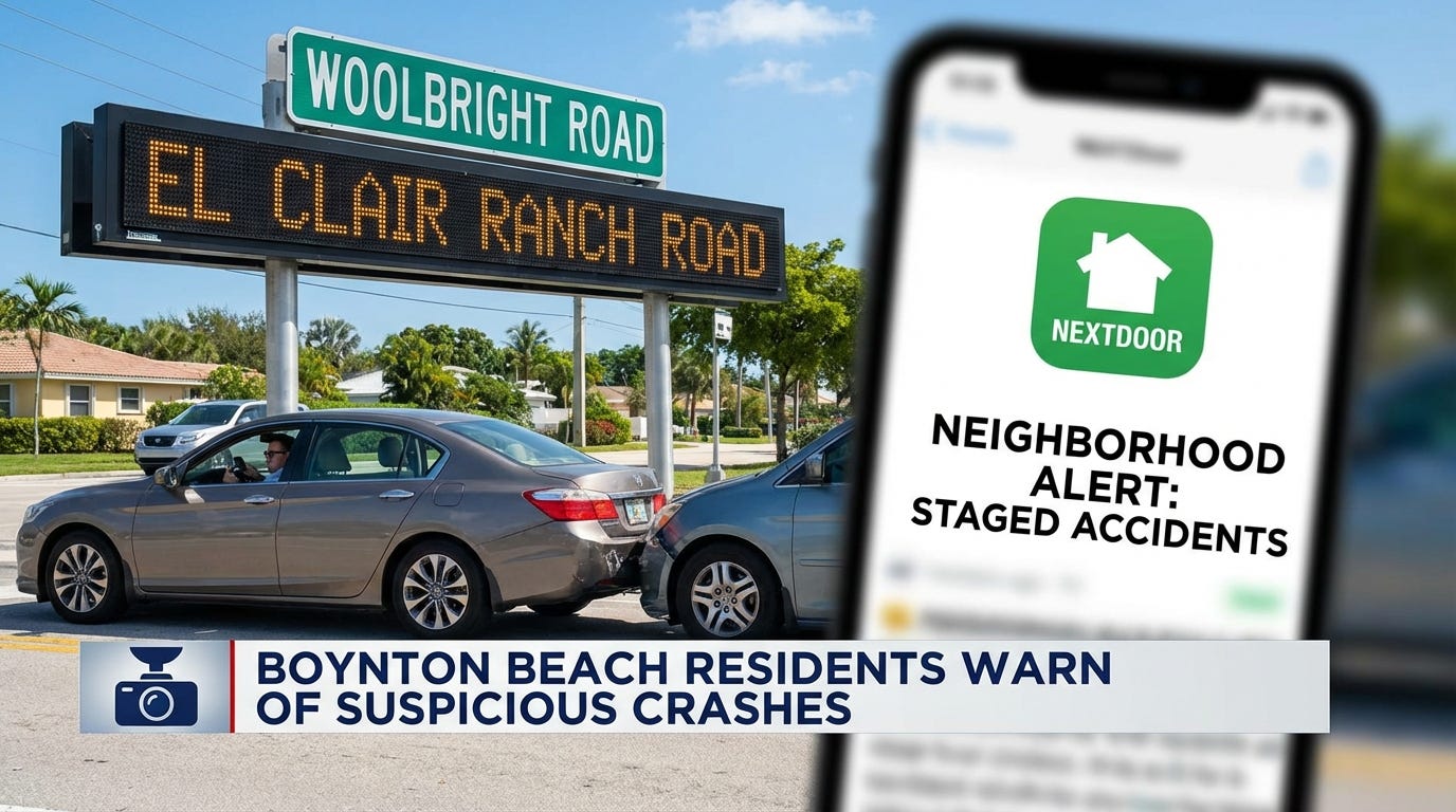 Boynton Beach residents are warning about a surge of suspicious car accidents being discussed on the neighborhood app Nextdoor. Several incidents have reportedly occurred at intersections such as Woolbright Road and El Clair Ranch Road, as well as Lake Ida Road and El Clair Ranch Road. In these cases, scammers allegedly cause intentional collisions at intersections without traffic cameras and then file exaggerated or false injury claims under Florida’s no-fault insurance system.
