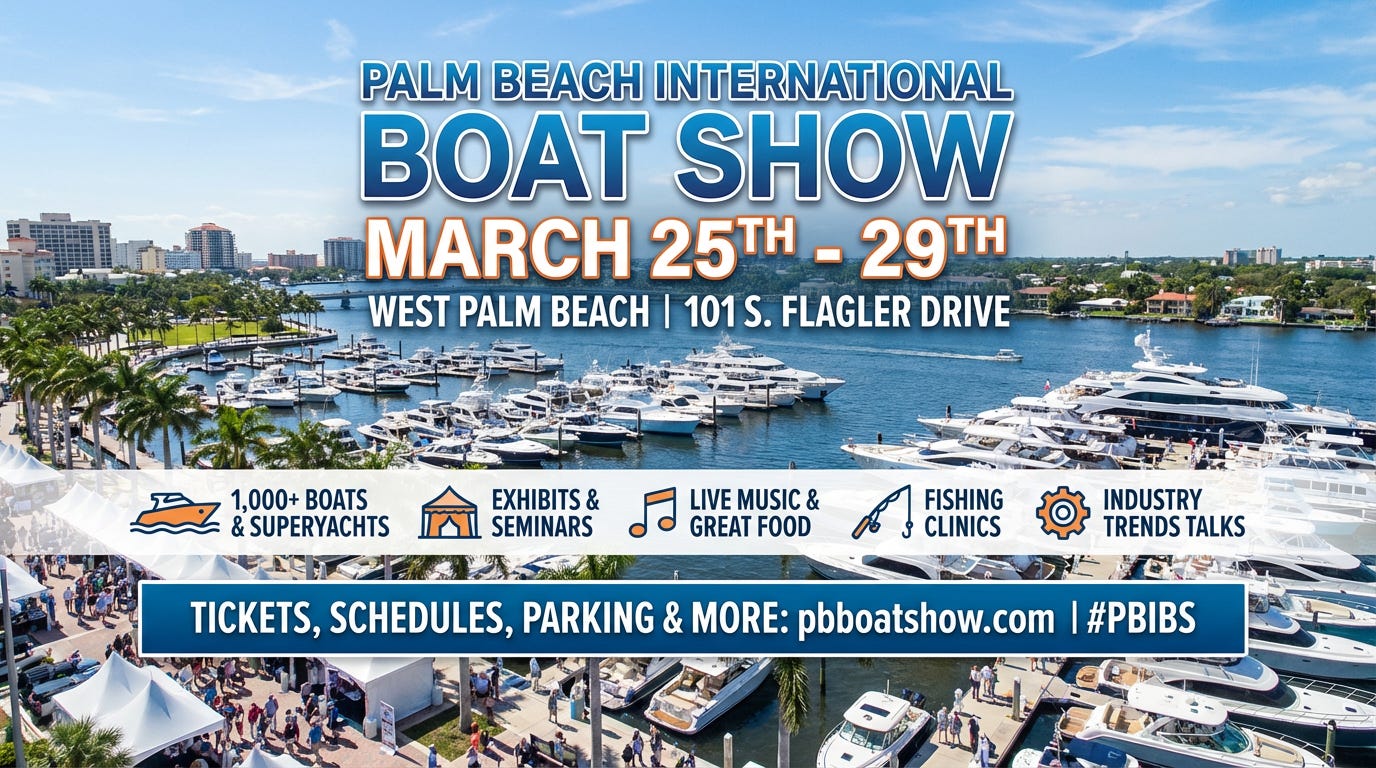 The Palm Beach International Boat Show is coming to the docks of West Palm Beach from Wednesday, March 25th through Sunday, March 29th, at 101 S. Flagler Drive. Explore more than 1,000 boats - including several superyachts - along with exhibits, seminars, live music, great food, fishing clinics, and talks on the latest industry trends. Daily times vary, so visit pbboatshow.com or search #PBIBS on social media for tickets, schedules, parking info, and more.