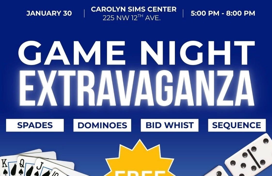 There will be a Game Night Extravaganza located at Carolyn Sims Center, located at 225 NW 12th Ave in Boynton Beach, on Friday, January 30th. From 5:00 pm-8:00 pm participants can enjoy games like spades, dominoes, whist, and sequence. This is a FREE event for ages 18 and over and is sponsored by the City of Boynton Beach Parks and Recreation Department. For more details go to recdept@bbfl.us.